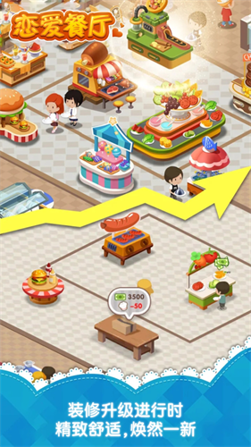 3、玩家们需要装修自己的餐厅,一家餐厅能够分成很多个分区,还担心顾客的恋爱问题,不能让顾客谈不上恋爱。