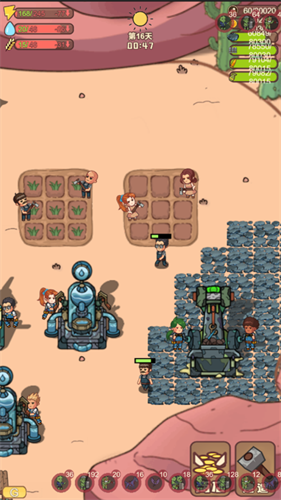 3、结合了白天建设村庄和夜晚的塔防战斗,白天时需要进行收集资源,规划土地,建造避难所和生产设施。