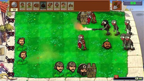5、除了植物方得到了加强之外,僵尸方也得到了一定幅度的增强,例如手持机枪的僵尸会快速削减植物的生命。