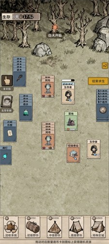 限时生存模式中,白天时间为12分钟,夜晚时间不限时间,白天时,可以进行采集,收容,制作等,夜晚时,所有时间进度将会暂停,进入防守战斗状态,并屏蔽掉除诡异卡外的其他卡牌。