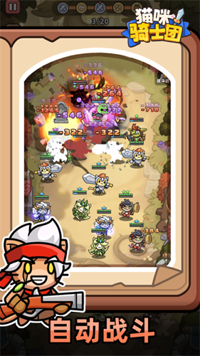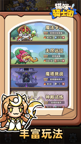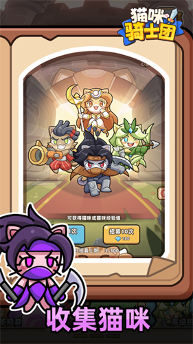 1、超50种可爱猫咪骑士,每只都有独特技能与进化形态,满足收集欲