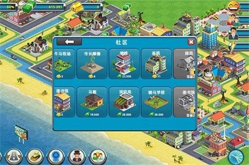 2、采用卡通的画面设计,为玩家的城市建造之旅带来休闲的感觉。