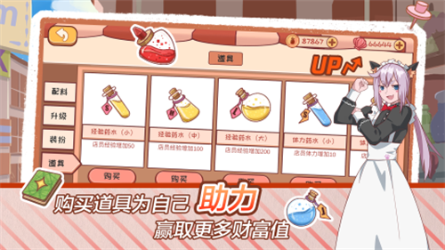 2、经营自己的果汁店,赚取足够的金币来扩张业务。