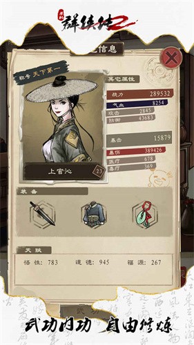 2.成为一个江湖大侠,完成冒险,试炼升级,剧情绝对精彩。