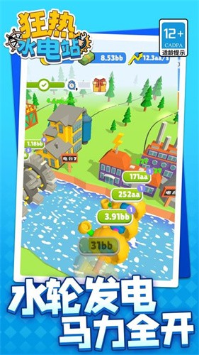 4、点击电站1的水车可以增加发电量,赚取更多的金钱,