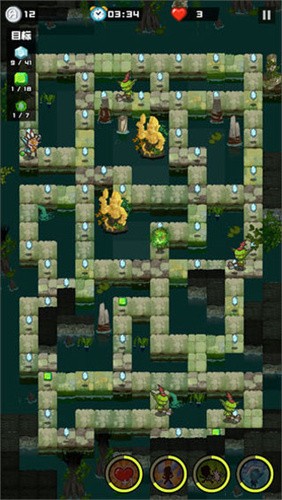 3、仔细观察迷宫的设计,寻找合适的路径,完成各种宝藏,成功的完成任务,小心的战斗,消灭关卡中出现的强大boss,躲避不同的机关和陷阱,限制完成任务,否则就会导致游戏失败。