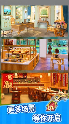 3、许多章节,每一个章节都代表一个场景建筑,其中有都市公寓,海岛名宿,私家别墅等,玩家需要通过章节内的关卡获得家具,装饰这些场景建筑,在线的娱乐玩法,与好友一起体验,轻松的闯关。