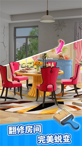 2、玩家的装修可以自己做主,跟随着游戏的任务挑战,完成这些,还能获取很多资源。