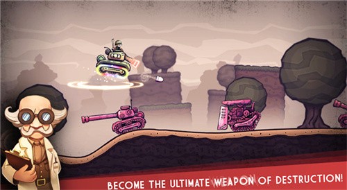 3、游戏采用关卡制的玩法,每一个关卡都有不同的地形和不同种类的敌人,玩家需要操控坦克保持平衡,在同时还要瞄准前方来袭的敌人,考验玩家的灵敏度。