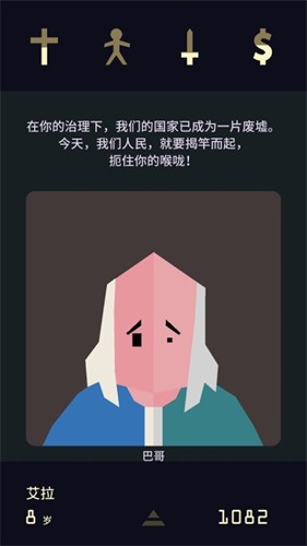 1、以简单的左右划动做出关键决策,每一次选择都将直接影响宗教、民生、军事和财政四大维度的平衡,任何失误都可能导致国家崩溃或女王身亡。