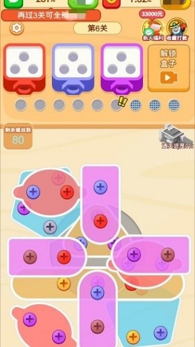 1、新手前期务必跟随教程引导,熟悉基本操作和螺丝拆除的顺序逻辑,这是通关所有关卡的基础。