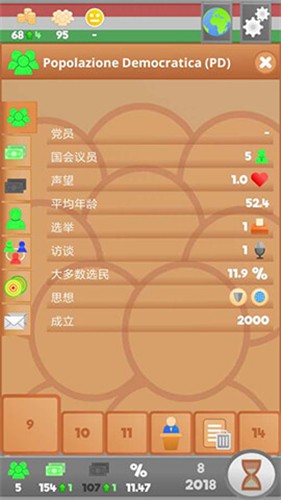 3. 选民:游戏中的基础群体,玩家的政策与行动将直接影响其满意度和支持度。