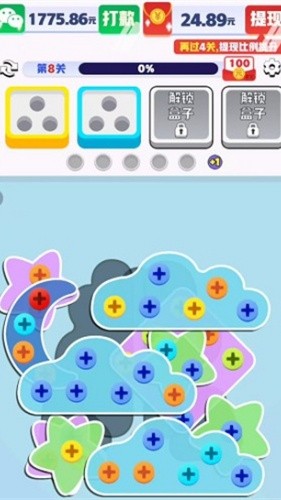 3、红包奖励成长体系:通过成功通关,玩家可以积累虚拟金币与红包奖励。达到一定额度即可提现,这种“动脑赚钱”的轻量化设计,为传统的消除游戏增添了持续游玩的额外动力。