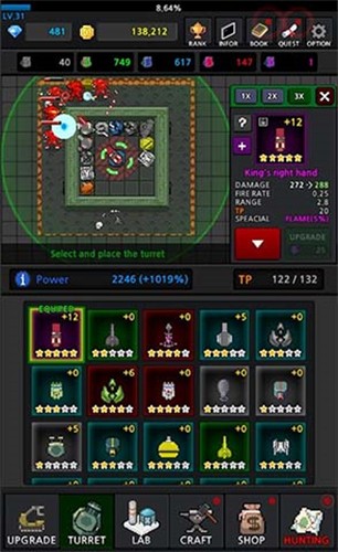 2、科技树研究与技能升级:通过研究所解锁炮塔特殊能力,如冰冻塔的群体减速或激光塔的穿透伤害,破解版钻石可瞬间点满科技树,提前体验终级技能效果。