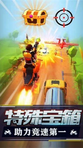 1、武装竞速核心对抗:游戏核心是融合了射击元素的竞速。在比赛中,你需要同时完成两项任务:一是驾驶摩托尽可能快地抵达终点;二是使用车上装载的武器攻击并摧毁其他对手的车辆,阻止他们完赛。