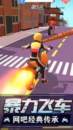 3、充满恶搞元素的近战攻击:除了远程武器,玩家还可以在并驾齐驱时使用踢击、棍击等近战方式骚扰对手。这种充满街头斗殴风格的设定,增添了游戏的戏谑感和意外性,时常能制造搞笑场面。
