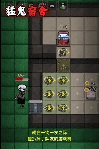 2、策略性炮塔建设与升级:利用睡觉获得的金币,玩家可以在房间门口及周围空位建造机枪、激光、冰冻等不同功能的炮塔。每种炮塔属性各异,需根据猛鬼的类型和波次,合理搭配并优先升级关键炮塔。