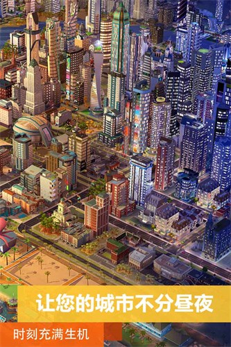 模拟城市我是市长游戏内灯红酒绿,车水马龙,和现实中的城市建筑很相似,让你仿佛置身在真实的城市中一般。