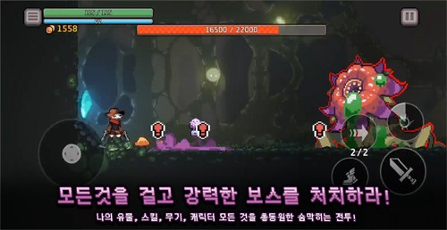 采用高品质像素图形制作的动作游戏!识别并突破每个boss的不同模式,感受攻击和控制的乐趣。