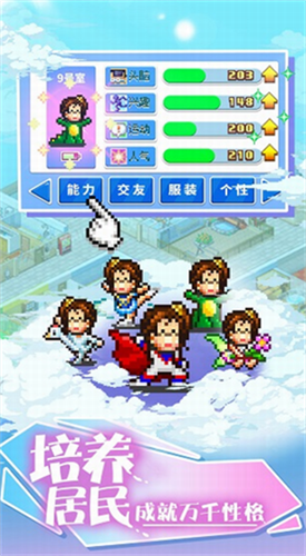 3、通过道具改变居民的属性、职业、兴趣,帮助它们掌握自己的人生,在各自的领域获取称号。