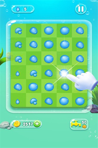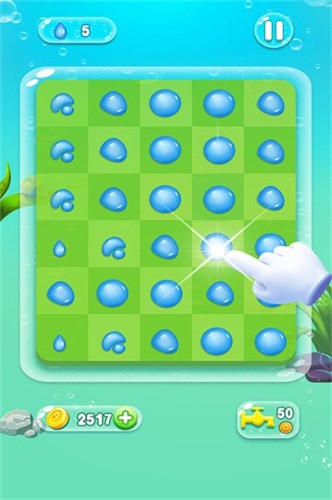 2、类似十滴水的经典水滴游戏,通过点击和融合,来消除所有的水滴。