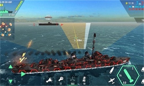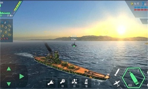 1、我们在游戏中能够看到我们战舰的上面有一个十字架,那个就是我们用来瞄准敌军的方向,十字架的位置在哪我们就会往哪里发射攻击,当我们瞄准敌人之后,我们就可以点击屏幕右边的攻击键发动导弹了。