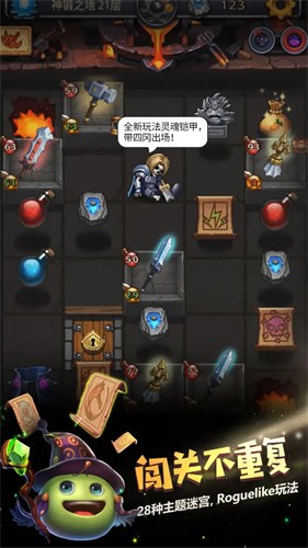 迷宫的每一层都是随机生成的,当你翻开石板,底下藏着的可能是会不断伤害你的怪物,也可能一个救命血瓶、魔法卷轴...甚至是向你求救的粉红小猪猪。