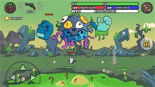猫咪角色的属性可不断提升,购买强力枪支,在地宫中战斗,不断增强自身实力。