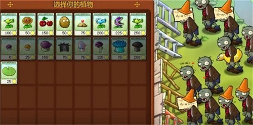 1、选择合适的植物,布置在战场上,抵御僵尸的进攻。