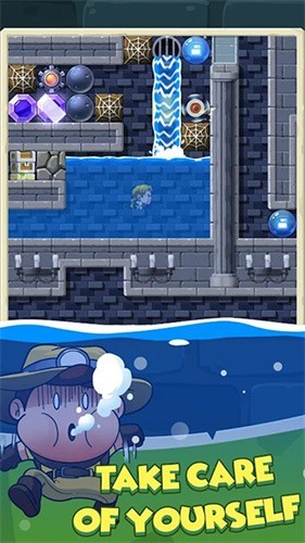 6、令人兴奋的游戏:各种各样的障碍物和陷阱:蛇、海龟、炸弹、猴子……有些地方你必须潜入水中完成你的任务。