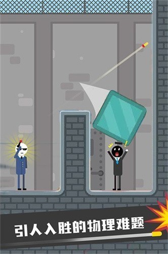 1、简约版的动作射击游戏,弱化枪战,融入物理解谜游戏,火柴人警察想要消灭坏蛋、间谍,不仅需要精准的枪技,而且必须动脑子。