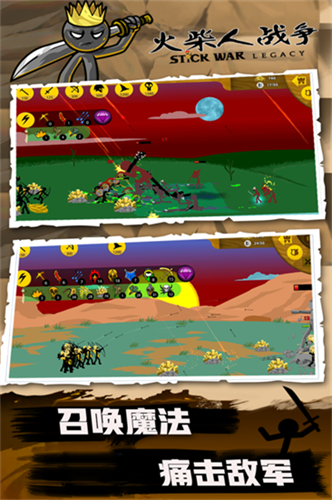 补充:此打法不适用一种战场,就是竞技场里双方刚开始有很多矿工和矿,这种战场主要将升城防和剑手升到满级,矿工可升可不升,前期想办法杀死对面所有矿工即可。