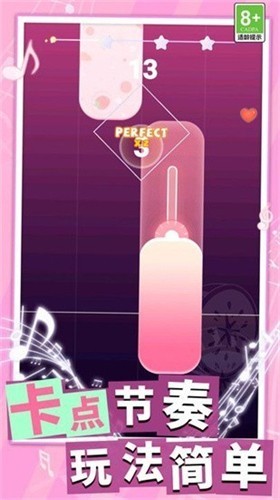 2、游戏操作极其简单,玩家只需根据音乐节奏点击下落的彩色方块即可。