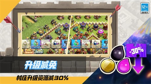 2、收集资源,掠夺敌军村庄资源,升级防御设施,让家乡村庄坚不可摧。