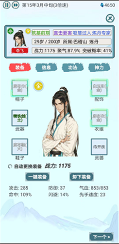 - 点开大殿,点击宗门封赏可以自动让弟子装备,吃丹药
