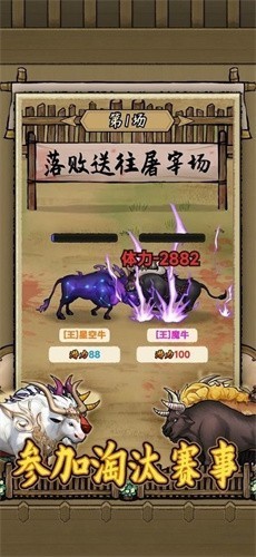 5、大赛战斗——组织厉害的牛参加淘汰赛、巅峰赛,获得丰厚奖励。