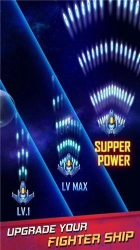 2、战机会自动进行攻击,击落敌机还有几率掉落增益道具。