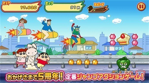 1、蜡笔小新跑酷是根据动漫打造而来,众多角色也都会出现在这里哦!