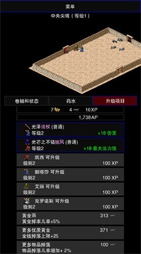 2、玩家需要做的就是靠尸骨和金币提高怪物难度和装备药水卷轴掉率等。
