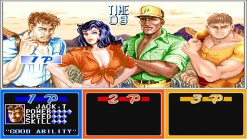 跑动中用双臂攻击敌人,跳跃中可以用脚或拳头攻击敌人。绝招是流星拳。速度最慢,但是攻击力最强,攻击动作很有魄力,血少点的敌人几乎可以三拳一摔秒杀,属于力量型。