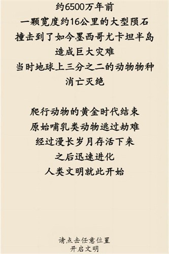 荒古文明无限资源版是一款非常好玩的文字叙述类放置休闲手游,游戏兼备了模拟经营、放置、挑战BOSS等等多元素于一体,在游戏里你将从荒古时代开启一段属于自己的文明,扩建农田,提供源源不断的粮食,玩家作为文明的领导者,通过策略性地分配资源、发展科技、训练军队、外交贸易等方式,逐步推动文明的发展进程,同时游戏中充斥着大量的随机事件,如自然灾害、外来入侵、内部叛乱、科技突破等,这些事件要求玩家做出决策,对文明的走向产生深远影响,每个选择都伴随着机遇与风险,考验玩家的策略智慧与应变能力,使得每一次游戏过程充满未知与变数。