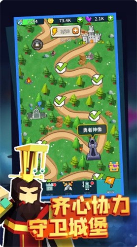 城堡护卫队无限金币无限钻石是一款简单放置类塔防战斗手游,为玩家解锁作弊菜单以及无限资源,为玩家带来更畅快的游戏体验,我们需要利用利用英雄、防御塔和城堡上的弓箭手,来抵御通过时空之门穿越而来的末日军团,这场战役关乎家园的生死存亡,只能前进不可后退,制定合适的战术策略,根据战术进行战斗,成功将敌人击败可以取得生后的奖励,需要保卫自己的城堡免受敌人的侵袭,更多可以解锁的内容和机制,将极大丰富游戏的玩法,带到玩家更饱满的游戏体验。