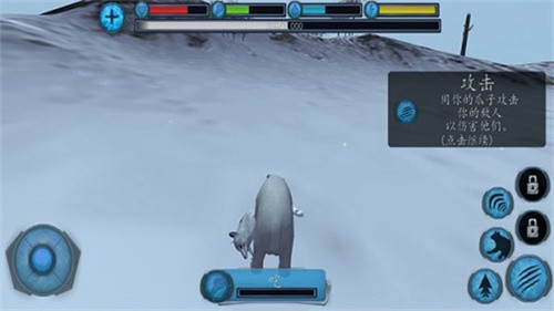 3.通过狩猎和完成任务,玩家的北极熊会获得经验值,解锁新的技能或能力,增强其生存能力。