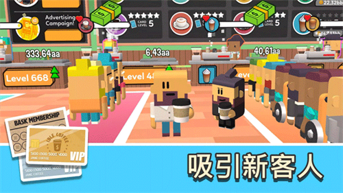 3、打造美式可爱画风的场景,打造最强大的咖啡王国,打造城市最大的咖啡店。