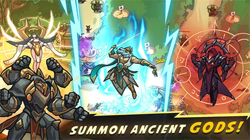 召唤5位史诗般的古代神明来帮助你战斗:木星、冰川、索尔、尼克斯和阿修罗。