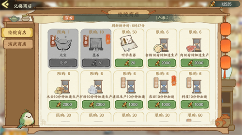绘院商人: 绘院成员每天有1次砍价机会,砍价时会随机削减购买物资的元宝消耗。所有成员共享同一价格。价格最低可以被砍到负数,变为负数后,购买时可以获得等同于价格的元宝。