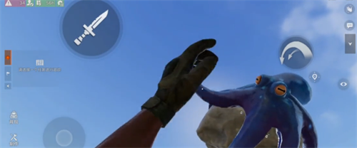 第1款是开荒必备的石头皮肤,谁能想到在开局时用来敲石头,还有砍树木的基础工具,居然会拥有传说级别的牌面。这款皮肤的设计还是很有创意的,一块看似普通的灰色石头上面趴着蓝色的章鱼,章鱼的触须还会微微的蠕动,细节感是很不错的。比较厉害的就是检视动画,当你切换到石头仔细观察时,章鱼就会喷出深蓝色的墨水,视觉冲击力很强,是普通皮肤没有办法比的。而且这石头的手感和原版没差,敲资源时可以看到章鱼伴随着动作轻微的晃动,开荒的枯燥感都被这可爱的设计充冲淡了不少。