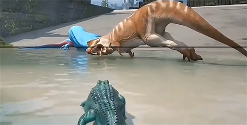 喝水的操作本身不复杂。找到水源,走过去,屏幕上会弹出一个交互提示,按E键就能喝。但有一点要注意,恐龙的头得正对着水面,提示才会出现。有时候站在水边死活没反应,多半是角度没对上,转一下方向试试就好了。体型大的恐龙还有个额外的麻烦,水太浅的地方根本没法喝,得找深一点的河段或者湖边,不然碰撞体积卡住了,交互就出不来。