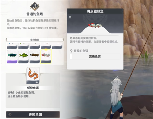 角龙鱼因为头部的角状突起而得名,性情可能会比较凶猛或者警惕。对于时间紧迫的玩家来说,森林关卡的普通钓鱼场是首选,因为那里交通方便;而对追求极致探索体验的玩家来说,水栖树湖幽静深邃的环境更符合他们的需要。不管选在何处,角龙鱼都是森林水域中当之无愧的霸主。